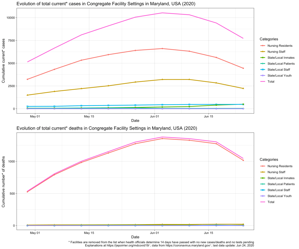 Post-scriptum on June 26, 2020: the day after I posted this, Maryland Governor Larry Hogan announced a safe and phased reopening plan for Maryland’s assisted living facilities. Although I welcome any initiative targeting the protection of everyone and especially the most vulnerable populations, the 2 first prerequisites are still tied to this absence of new cases in 14 days (which is fine) – this is still not a reason to intentionally remove facilities from the count. And I couldn’t see the phased approach – but I guess this will be followed up in another post here. To be continued …