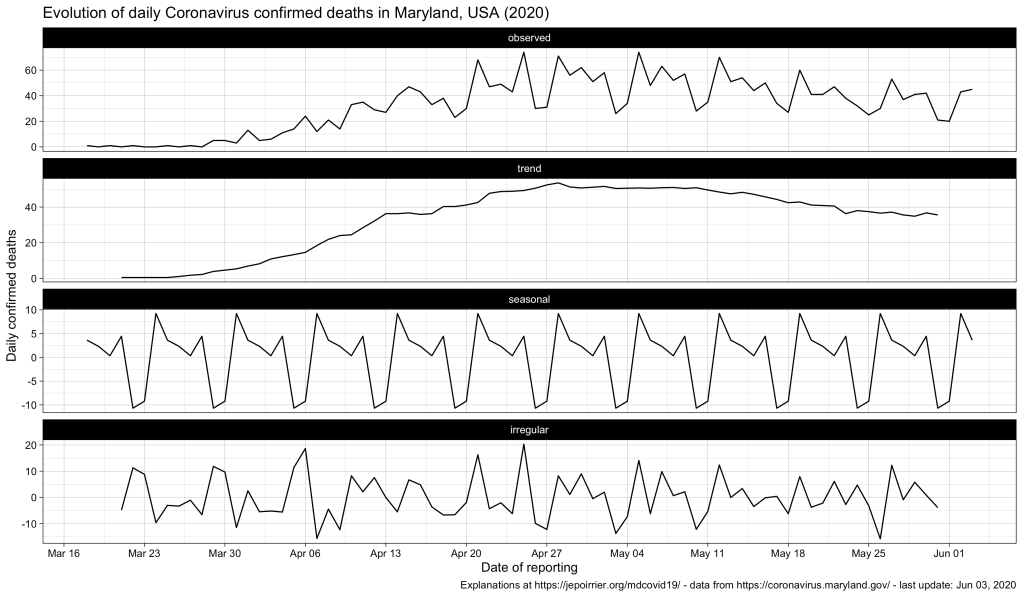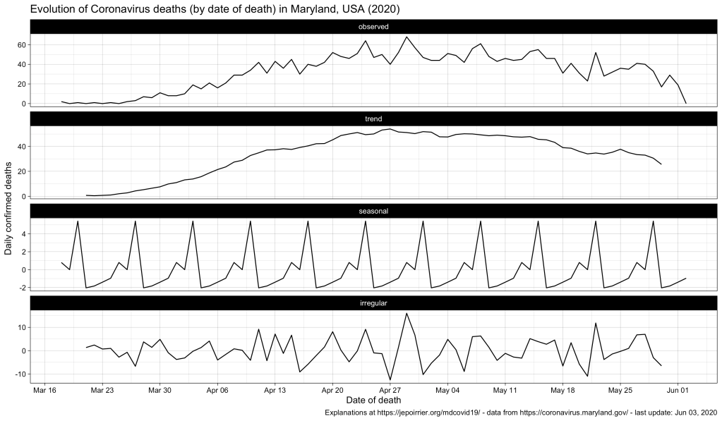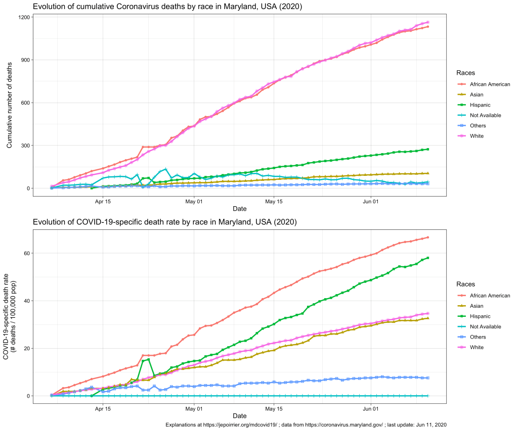 As usual, you’ll find other graphs on my page about COVID-19 in Maryland (and figures above are updated with new data as they appear) and the data, code and figures are on Github (including these ones).
