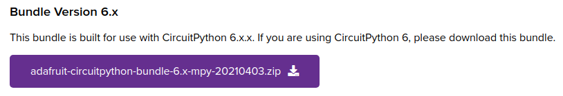 CircuitPython includes a lot of modules. But it also need some libraries to work completely. These libraries can be found here. Make sure you download a version with the same first number. For instance, here, I’ll download bundle v6.x.